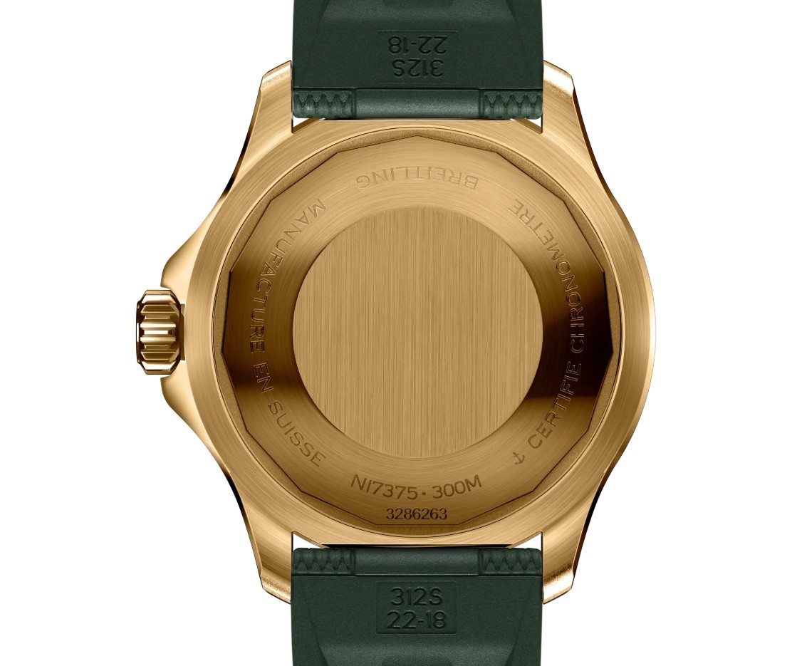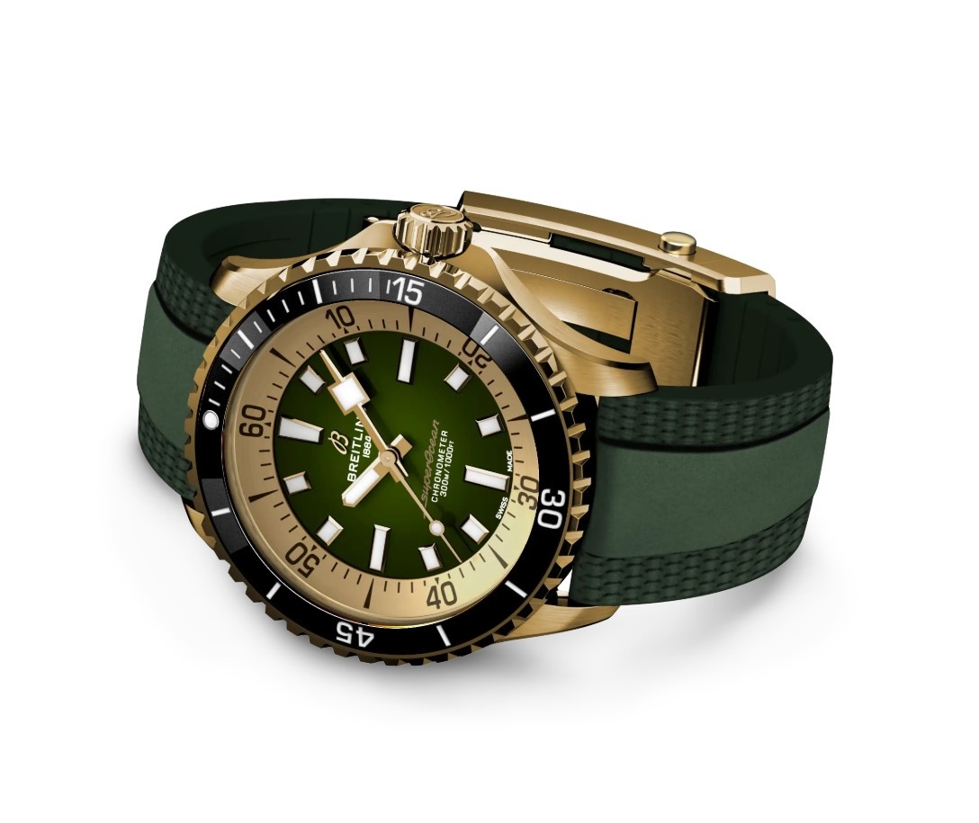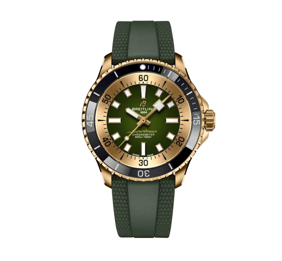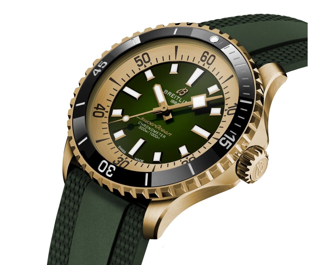 Dit horloge heeft een groene analoge wijzerplaat met een bronzen kast (42 mm diameter) en is voorzien van saffierglas. Het horloge is voorzien van een automatisch uurwerk en is 30 ATM/Bar (300m) waterdicht. Dit horloge komt uit de Superocean serie. Het horloge heeft geen extra functies. Dit horloge heeft 2 jaar garantie. Voor meer informatie over Breitling gaat u naar www.breitling.com.
