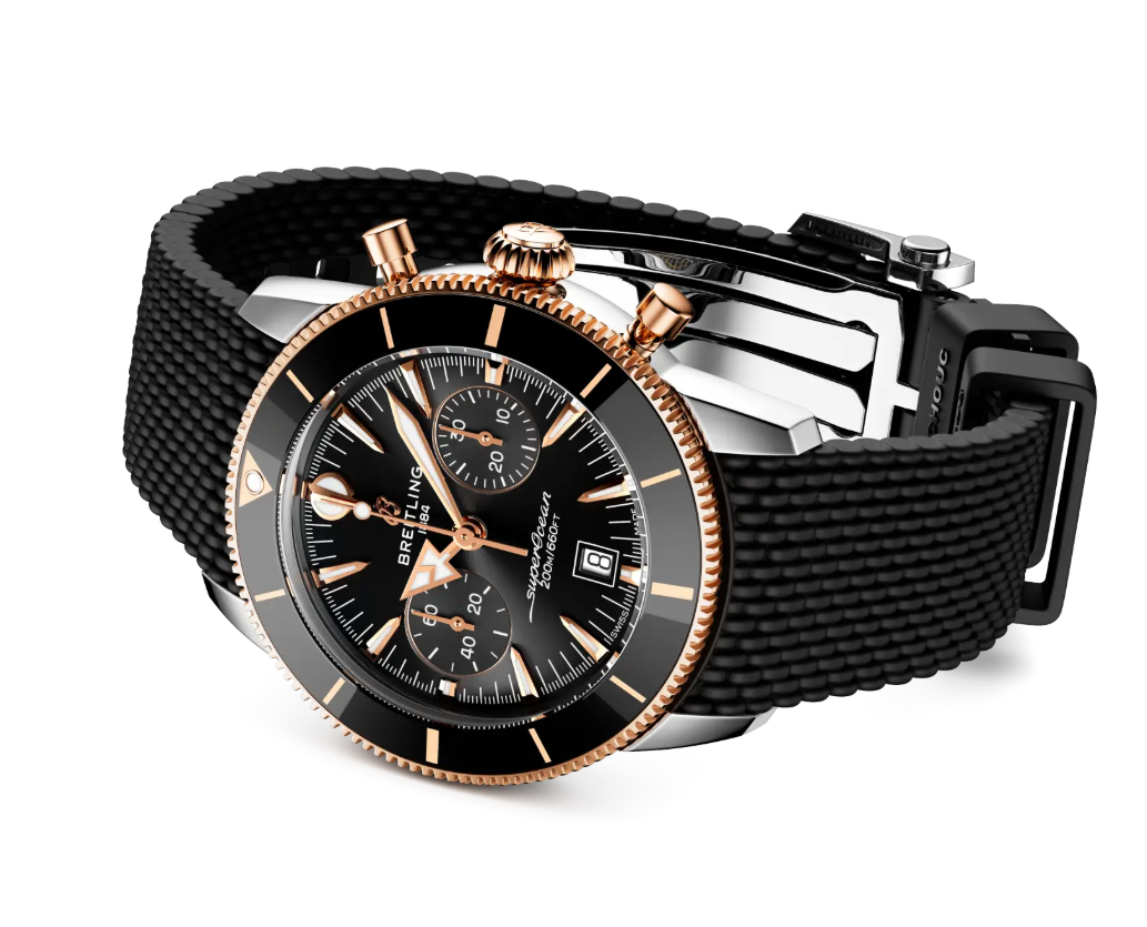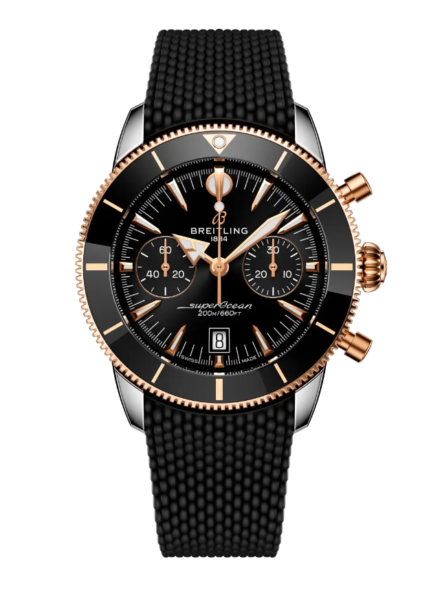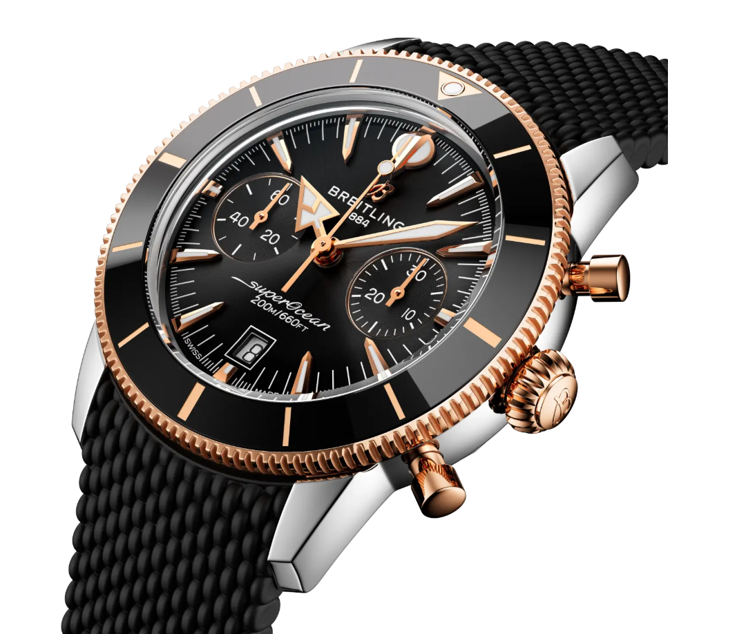 Dit horloge heeft een zwarte analoge wijzerplaat met een bicolor kast (42 mm diameter) en is voorzien van saffier glas. Het horloge is voorzien van een automatisch uurwerk en is 20 ATM/Bar (200m) waterdicht. Dit horloge komt uit de Superocean Heritage serie. Het horloge heeft de volgende extra functies: chronograaf, datum. Dit horloge heeft 5 jaar garantie. Voor meer informatie over Breitling gaat u naar www.breitling.com.