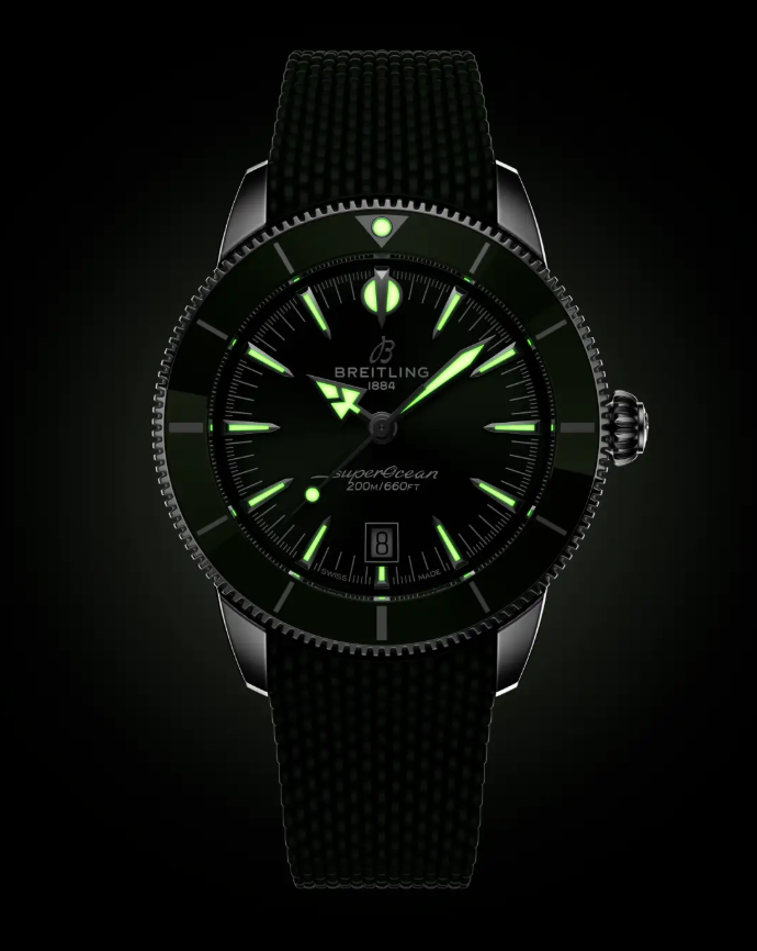 Dit horloge heeft een groene analoge wijzerplaat met een zilverkleurige kast (40 mm diameter) en is voorzien van saffier glas. Het horloge is voorzien van een automatisch uurwerk en is 20 ATM/Bar (200m) waterdicht. Dit horloge komt uit de Superocean Heritage serie. Het horloge heeft de volgende extra functies: datum. Dit horloge heeft 5 jaar garantie. Voor meer informatie over Breitling gaat u naar www.breitling.com.