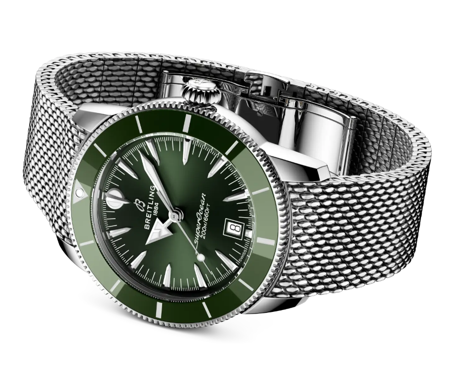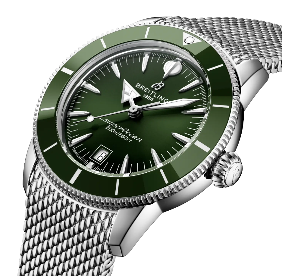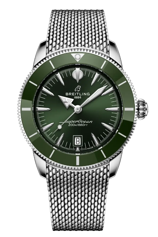 Dit horloge heeft een groene analoge wijzerplaat met een zilverkleurige kast (42 mm diameter) en is voorzien van saffier glas. Het horloge is voorzien van een automatisch uurwerk en is 20 ATM/Bar (200m) waterdicht. Dit horloge komt uit de Superocean Heritage serie. Het horloge heeft de volgende extra functies: datum. Dit horloge heeft 5 jaar garantie. Voor meer informatie over Breitling gaat u naar www.breitling.com.