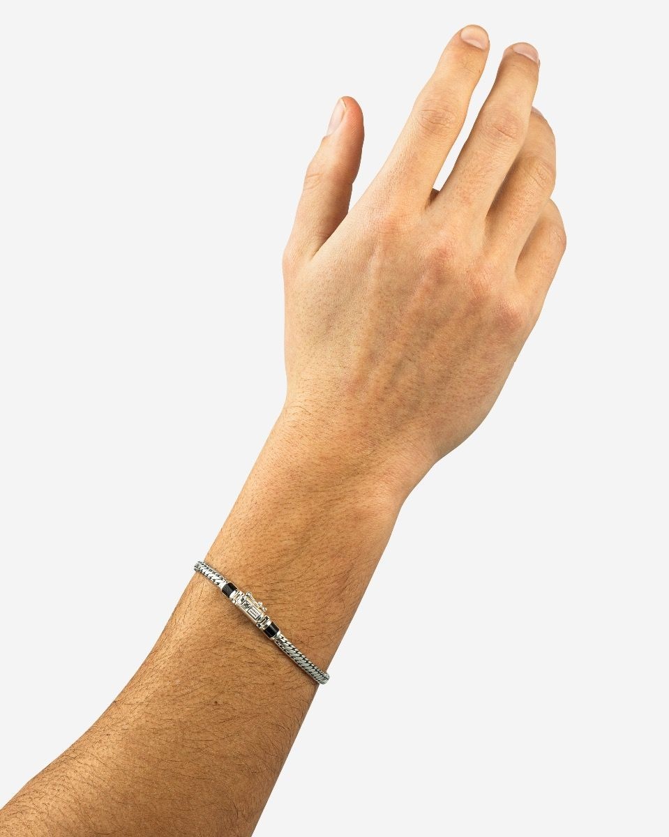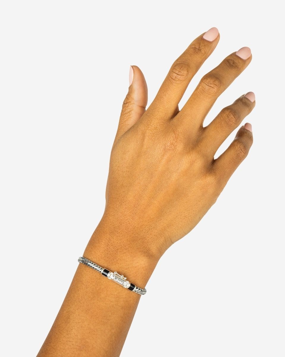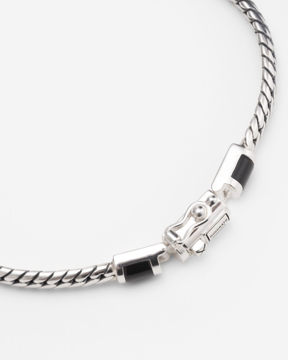 Deze armband is gemaakt van 925 zilver. De armband is bezet met onyx. De armband is maat E+. Deze armband komt uit de 'BEN' collectie. Zit uw maat er niet bij? Wij kunnen als officieel dealer alles voor u bestellen. Voor meer informatie over Buddha to Buddha gaat u naar www.buddhatobuddha.com.