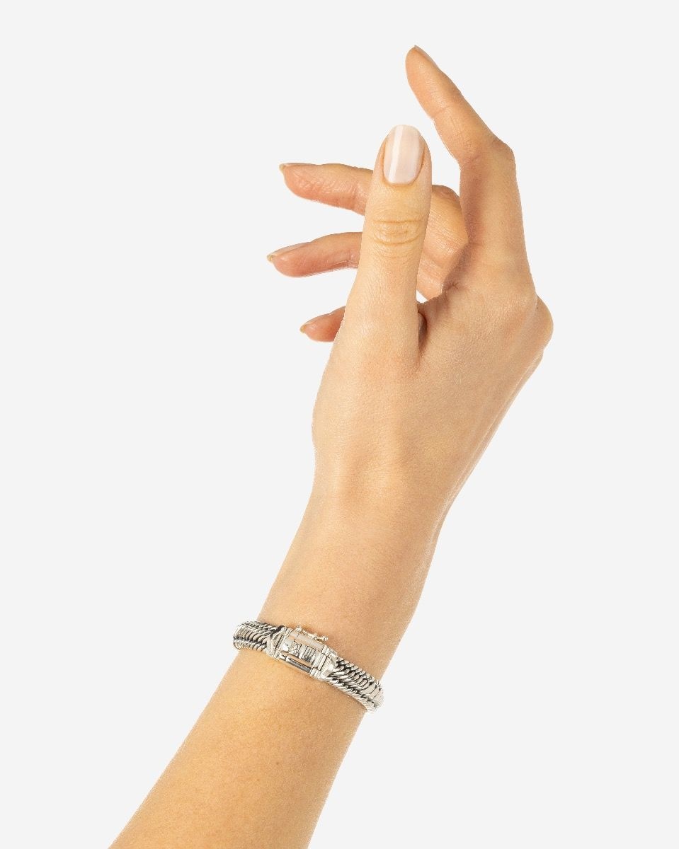 Deze armband is gemaakt van 925 zilver. De armband is maat E+. Deze armband komt uit de 'EDWIN' collectie. Zit uw maat er niet bij? Wij kunnen als officieel dealer alles voor u bestellen. Voor meer informatie over Buddha to Buddha gaat u naar www.buddhatobuddha.com.