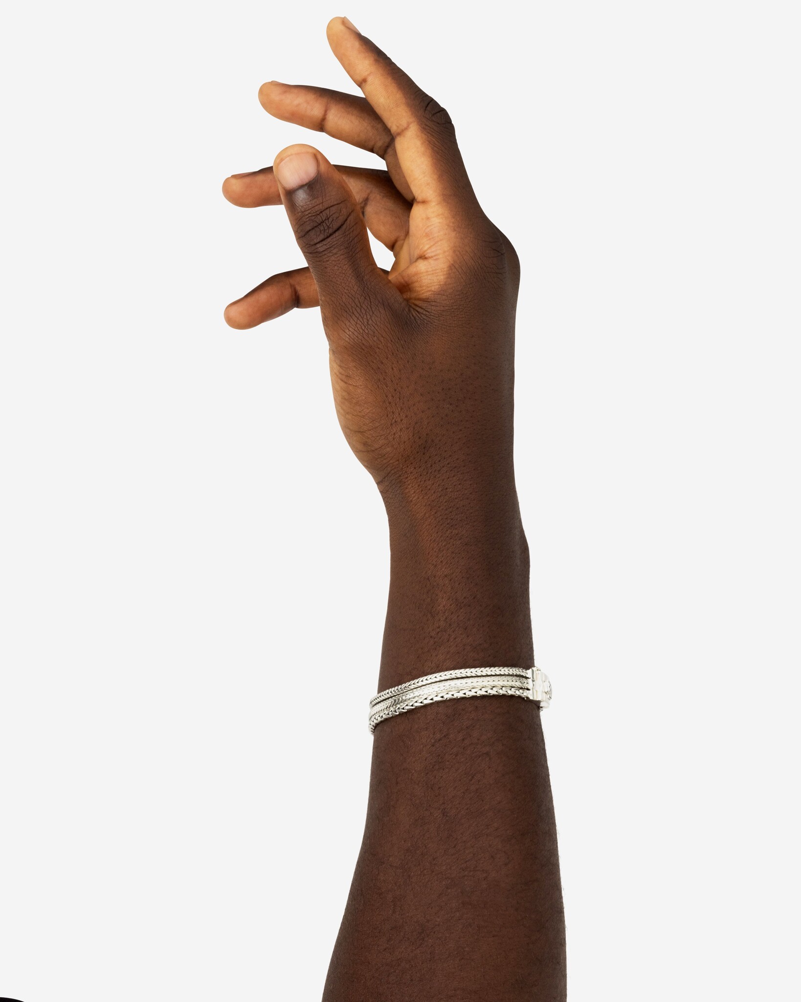 Deze armband is gemaakt van 925 zilver. De armband is maat E. Deze armband komt uit de 'TRIPLE' collectie. Zit uw maat er niet bij? Wij kunnen als officieel dealer alles voor u bestellen. Voor meer informatie over Buddha to Buddha gaat u naar www.buddhatobuddha.com.