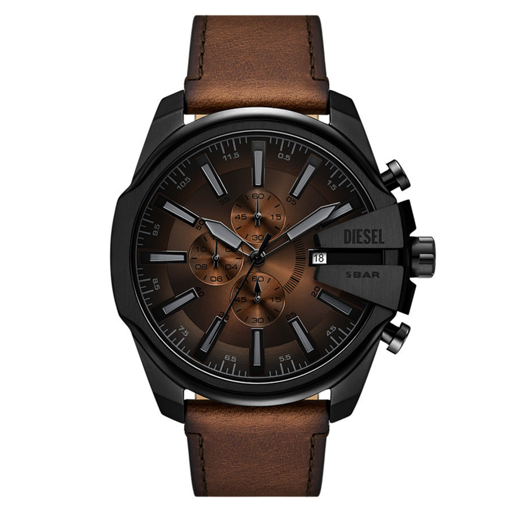 Dit horloge heeft een bruine analoge wijzerplaat met een zilverkleurige kast (51 mm diameter) en is voorzien van mineraalglas. Het horloge is voorzien van een quartz (batterij) uurwerk en is 10 ATM/Bar (100m) waterdicht. Dit horloge komt uit de Mega Chief serie. Het horloge heeft de volgende extra functies: chronograaf en datum. Voor meer informatie over Diesel gaat u naar www.diesel.com.