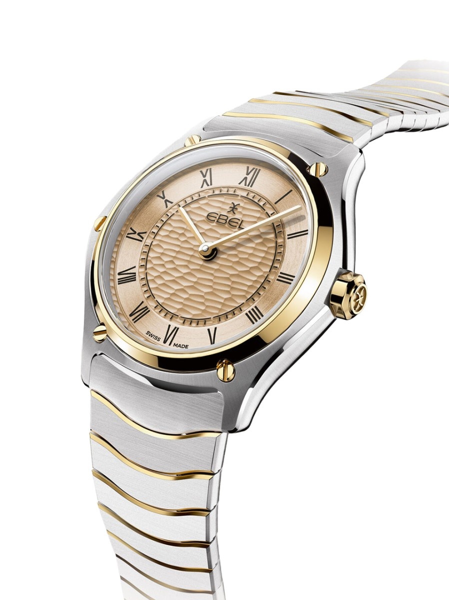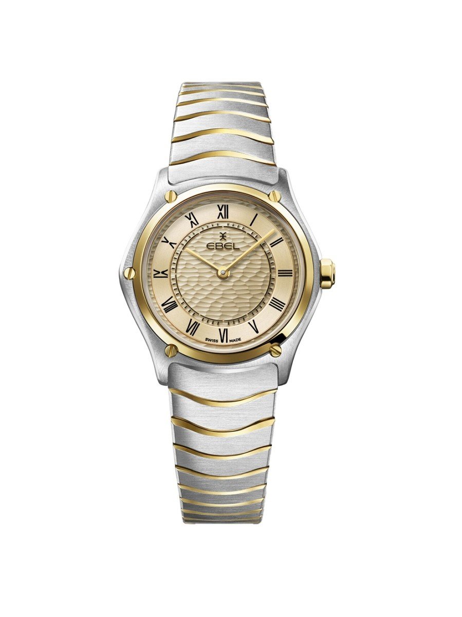 Dit horloge heeft een geelgoudkleurige analoge wijzerplaat met een bicolor kast (29mm diameter) en is voorzien van saffierglas. Het horloge is voorzien van een quartz uurwerk en is 5 ATM/Bar (50m) waterdicht. Dit horloge komt uit de Sport Classic serie. Het horloge heeft geen extra functies. Voor meer informatie over Ebel gaat u naar www.ebel.com.