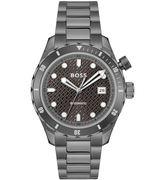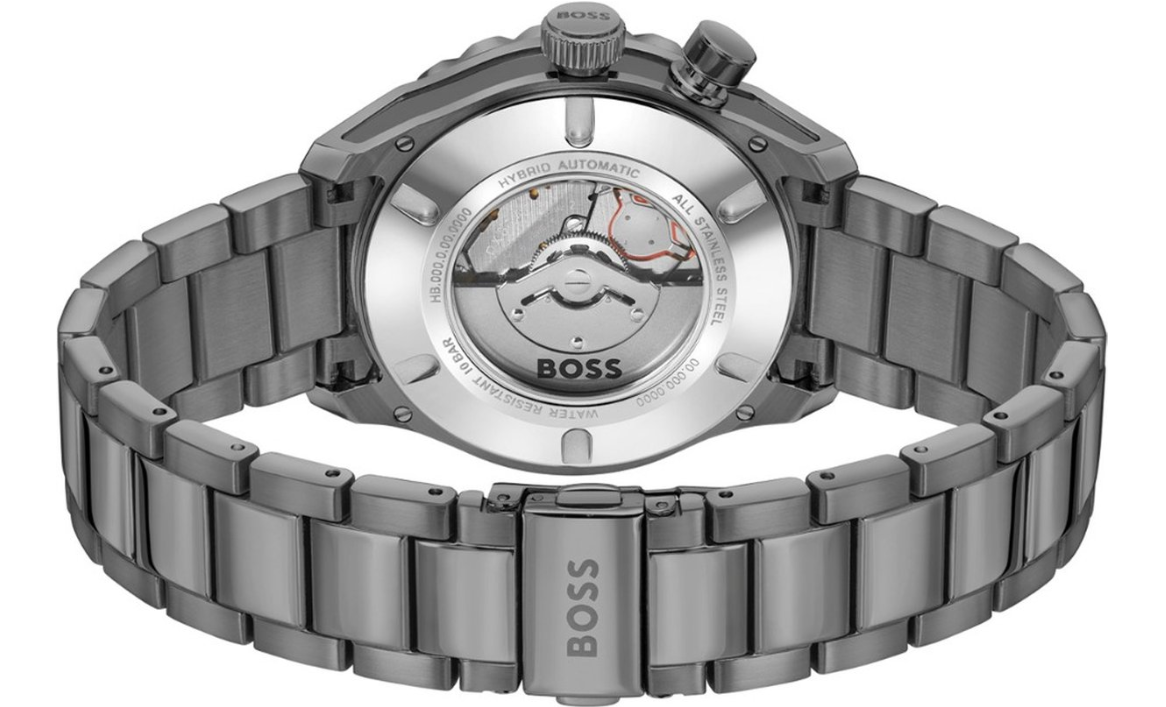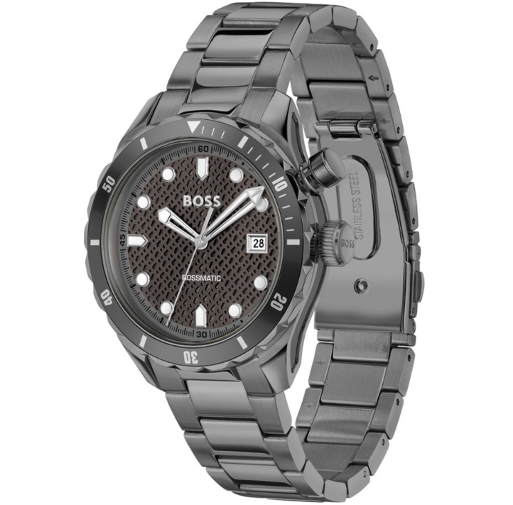 Dit horloge heeft een grijze analoge wijzerplaat met een grijze kast (42 mm diameter) en is voorzien van mineraalglas. Het horloge is voorzien van een automatisch uurwerk en is 10 ATM/Bar (100m) waterdicht. Dit horloge komt uit de Bossmatic serie. Het horloge heeft de volgende extra functies: datum. Voor meer informatie over Hugo Boss Black gaat u naar www.hugoboss.com.