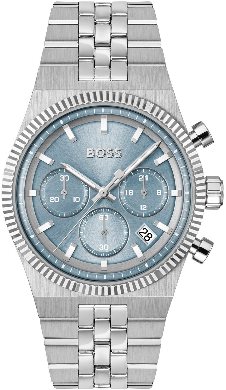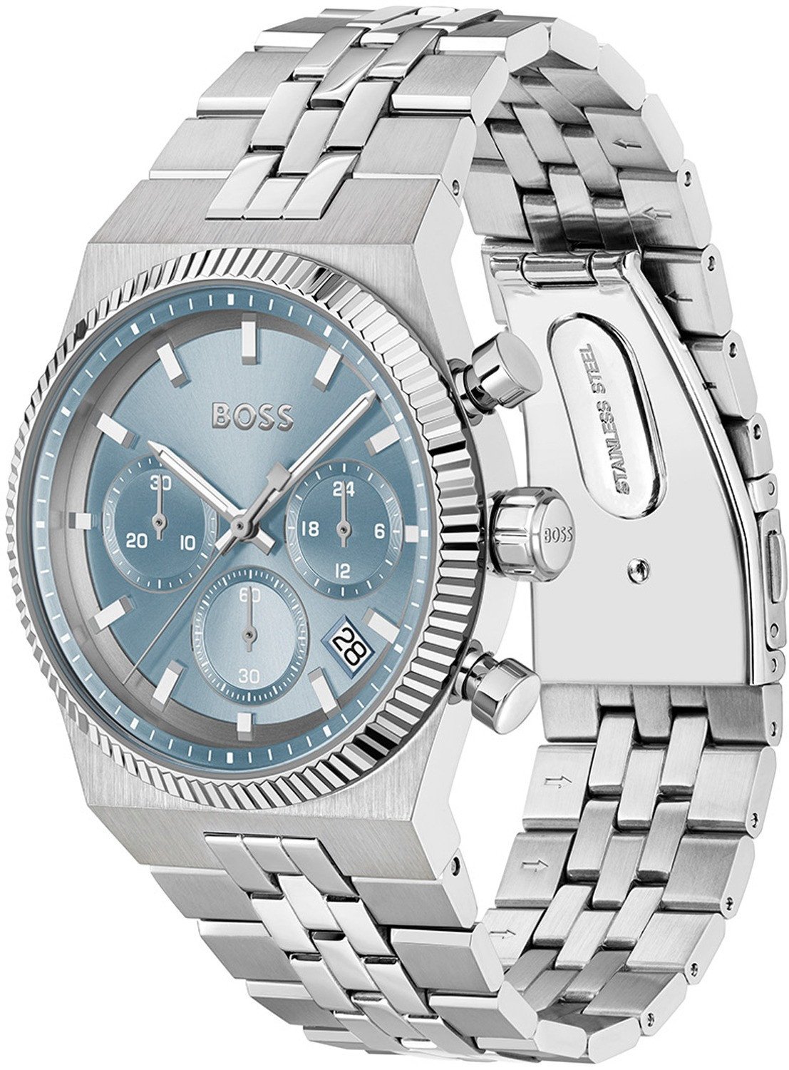 Dit horloge heeft een lichtblauwe analoge wijzerplaat met een zilverkleurige kast (41 mm diameter) en is voorzien van mineraalglas. Het horloge is voorzien van een quartz uurwerk en is 5 ATM/Bar (50m) waterdicht. Dit horloge komt uit de Candor serie. Het horloge heeft de volgende extra functies: datum, chronograaf. Voor meer informatie over Hugo Boss Black gaat u naar www.hugoboss.com.