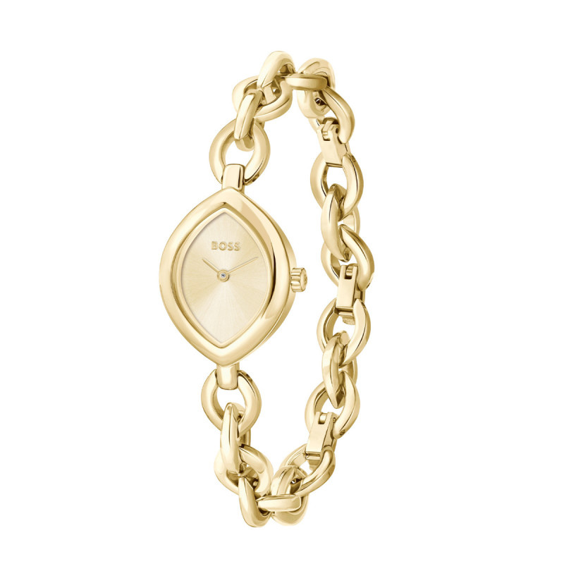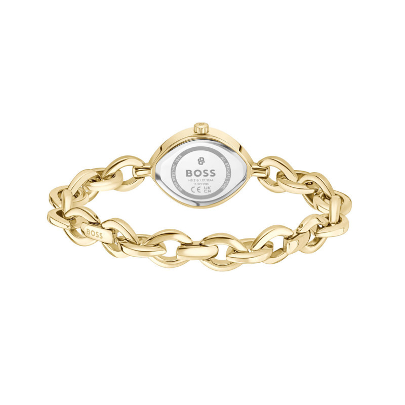 Dit horloge heeft een geelgoudkleurige analoge wijzerplaat met een geelgoudkleurige kast (29 mm diameter) en is voorzien van mineraalglas. Het horloge is voorzien van een quartz (batterij) uurwerk en is 3 ATM/Bar (30m) waterdicht. Dit horloge komt uit de Fiora serie. Het horloge heeft de volgende extra functies: geen. Voor meer informatie over Hugo Boss Black gaat u naar www.hugoboss.com.