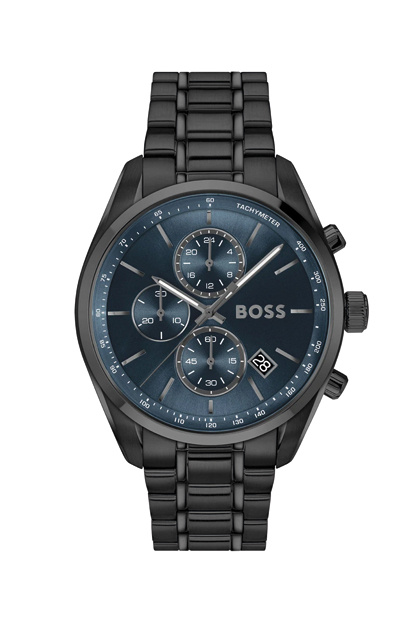 Dit horloge heeft een blauwe analoge wijzerplaat met een zwarte kast (40 mm diameter) en is voorzien van mineraal glas. Het horloge is voorzien van een quartz (batterij) uurwerk en is 5 ATM/Bar (50m) waterdicht. Dit horloge komt Grand Prix serie. Het horloge heeft de volgende extra functies: datum, chronograaf, tachymeter en 24-uursaanduiding. Voor meer informatie over Hugo Boss Black gaat u naar www.hugoboss.com.