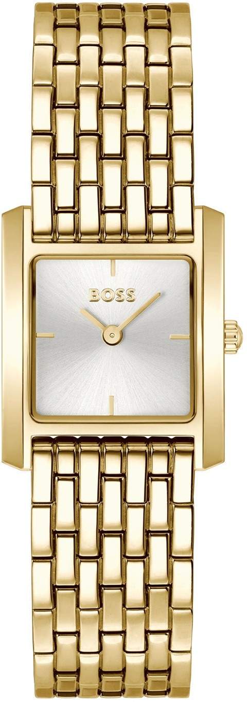 Dit horloge heeft een zilverkleurige analoge wijzerplaat met een geelgoudkleurige kast (26 mm diameter) en is voorzien van mineraalglas. Het horloge is voorzien van een quartz (batterij) uurwerk en is 3 ATM/Bar (30m) waterdicht. Dit horloge komt uit de Lucy serie. Het horloge heeft de volgende extra functies: geen. Voor meer informatie over Hugo Boss Black gaat u naar www.hugoboss.com.
