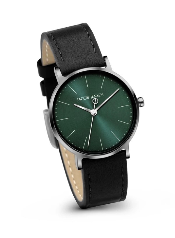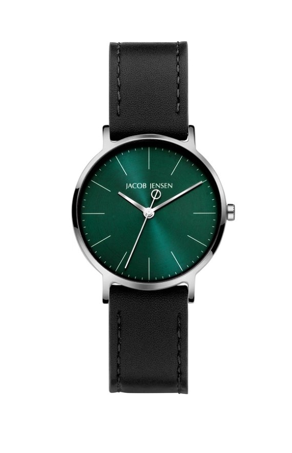 Dit horloge heeft een groene analoge wijzerplaat met een zilverkleurige kast (32 mm diameter) en is voorzien van mineraal glas. Het horloge is voorzien van een quartz uurwerk en is 5 ATM/Bar (50m) waterdicht. Dit horloge komt uit de Timeless Nordic serie. Het horloge heeft geen extra functies. Voor meer informatie over Jacob Jensen gaat u naar www.jacobjensen.nl.