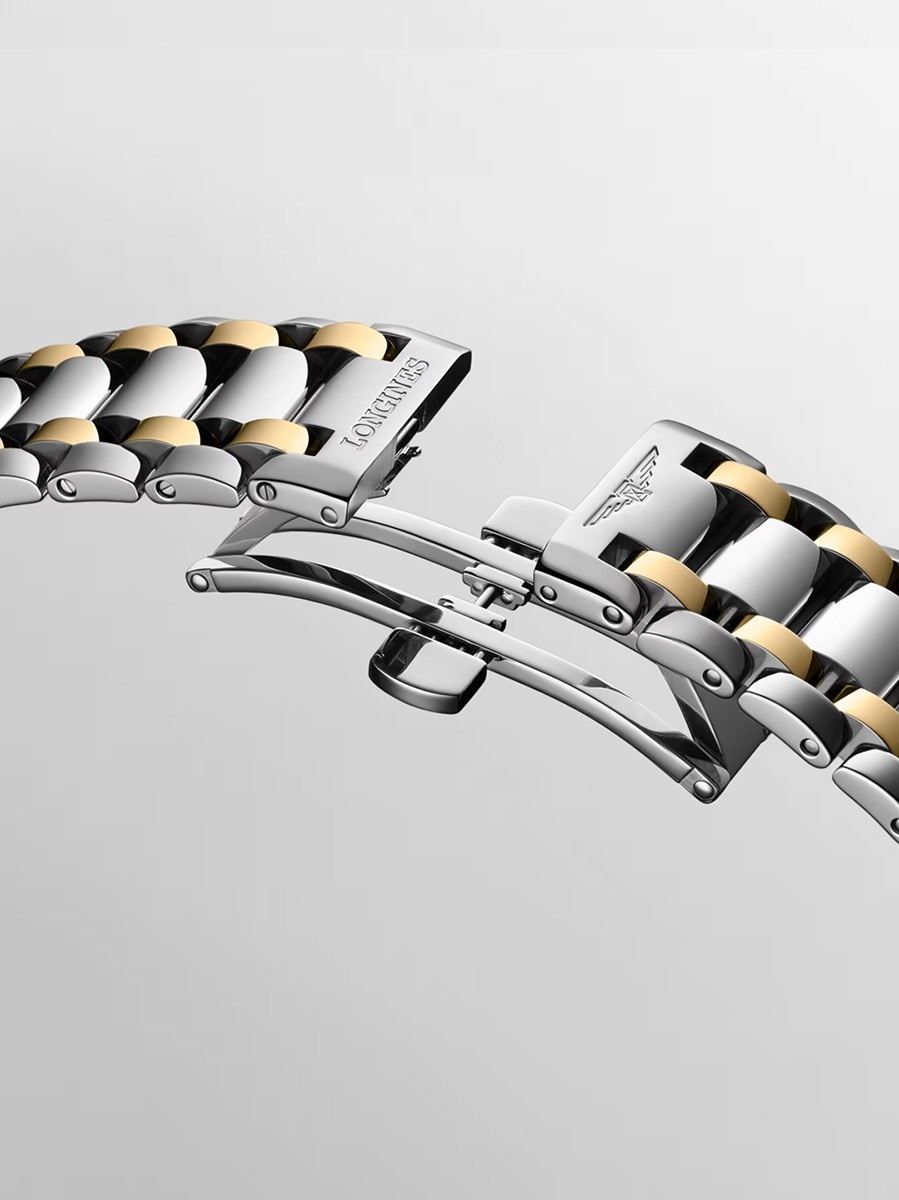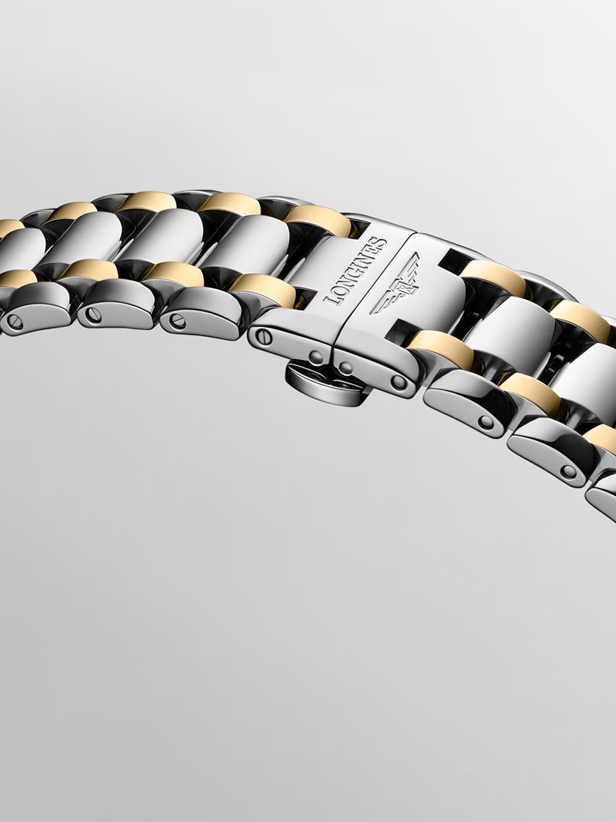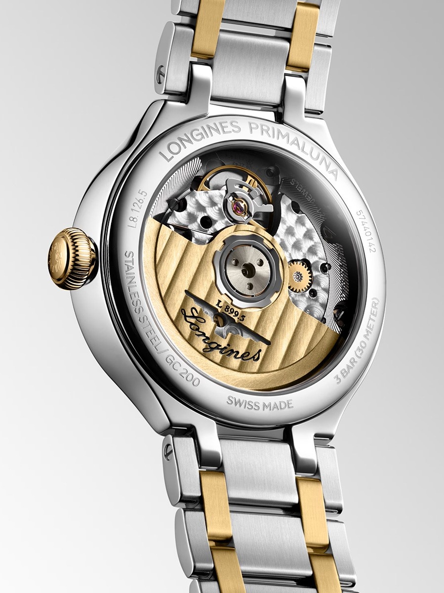 Dit horloge heeft een zilverkleurige analoge wijzerplaat met een bicolor kast (34 mm diameter) en is voorzien van saffier glas. Het horloge is voorzien van een automatisch uurwerk en is 3 ATM/Bar (30m) waterdicht. Dit horloge komt uit de Primaluna serie. Het horloge heeft de volgende extra functies: datumaanduiding, maanfase. Voor meer informatie over Longines gaat u naar www.longines.com.