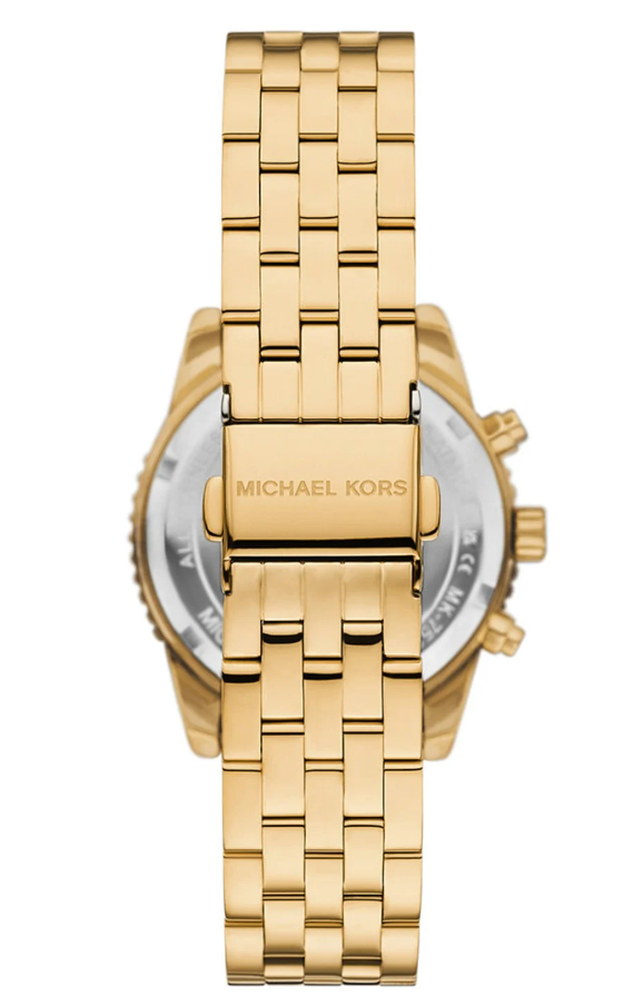 Dit horloge heeft een geelgoudkleurige analoge wijzerplaat met een geelgoudkleurige kast (35 mm diameter) en is voorzien van mineraal glas. Het horloge is voorzien van een quartz (batterij) uurwerk en is 5 ATM/Bar (50m) waterdicht. Dit horloge komt uit de Bryant serie. Het horloge heeft de volgende extra functies: chronograaf, datum. Voor meer informatie over Michael Kors gaat u naar www.michaelkors.com.