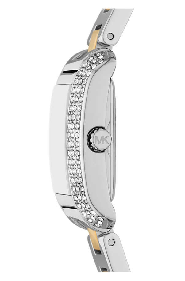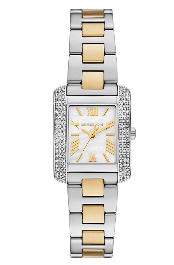 Dit horloge heeft een parelmoer analoge wijzerplaat met een zilverkleurige kast (22 mm diameter) en is voorzien van mineraal glas. Het horloge is voorzien van een quartz (batterij) uurwerk en is 5 ATM/Bar (50m) waterdicht. Dit horloge komt uit de Emery serie. Het horloge heeft geen extra functies. Voor meer informatie over Michael Kors gaat u naar www.michaelkors.com.