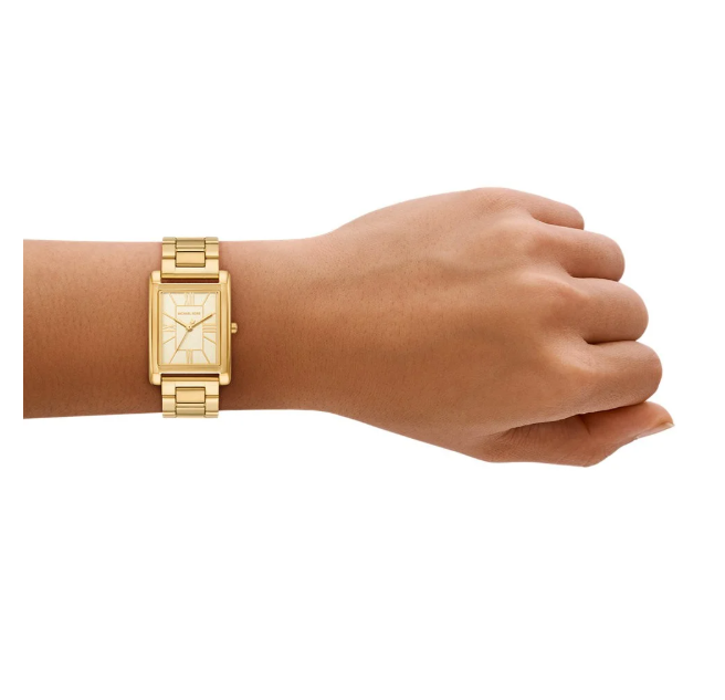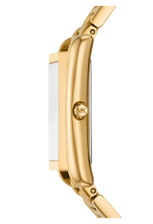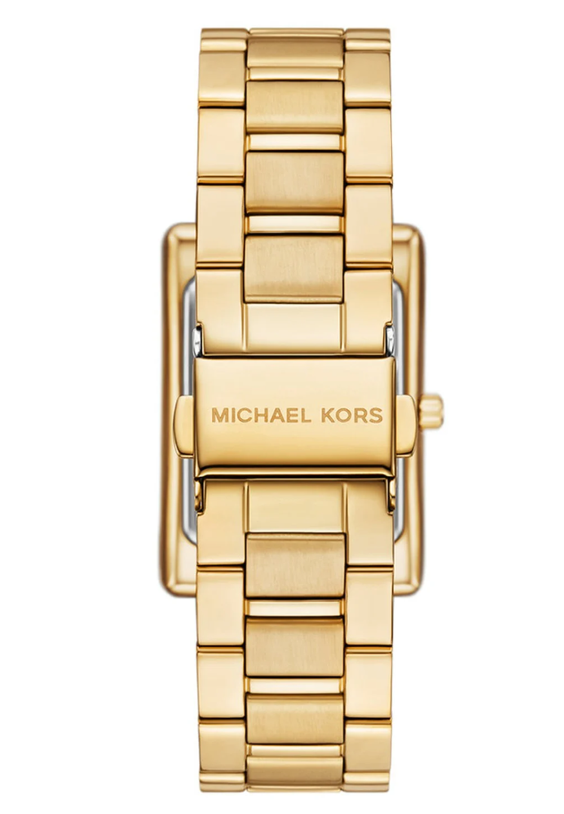 Dit horloge heeft een geelgoudkleurige analoge wijzerplaat met een geelgoudkleurige kast (26 mm diameter) en is voorzien van mineraal glas. Het horloge is voorzien van een quartz (batterij) uurwerk en is 5 ATM/Bar (50m) waterdicht. Dit horloge komt uit de Essex serie. Het horloge heeft geen extra functies. Voor meer informatie over Michael Kors gaat u naar www.michaelkors.com.