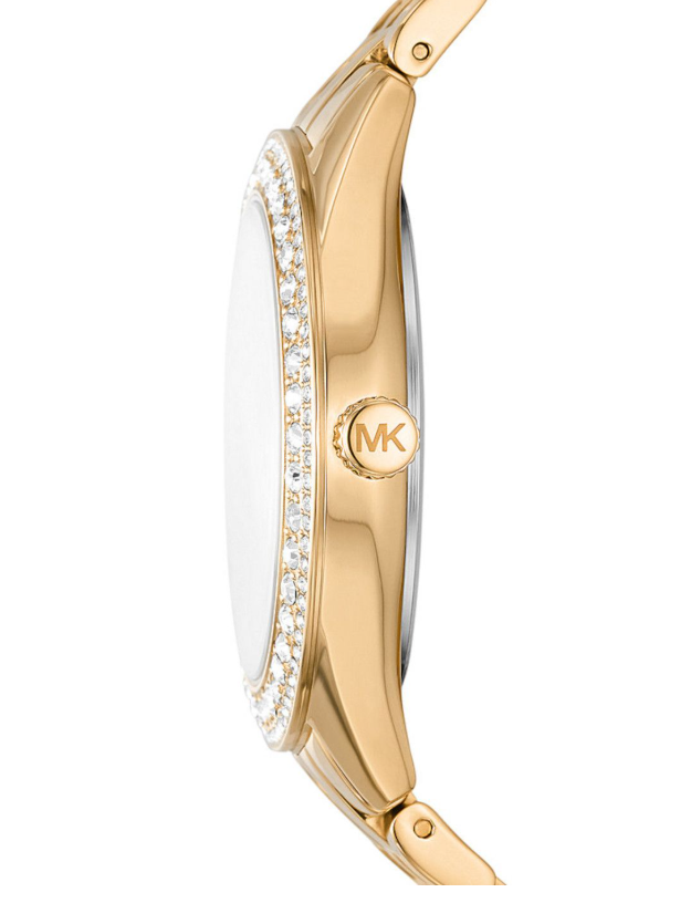 Dit horloge heeft een geelgoudkleurige analoge wijzerplaat met een geelgoudkleurige kast (38 mm diameter) en is voorzien van mineraal glas. Het horloge is voorzien van een quartz (batterij) uurwerk en is 5 ATM/Bar (50m) waterdicht. Dit horloge komt uit de Harlowe serie. Het horloge heeft geen extra functies. Voor meer informatie over Michael Kors gaat u naar www.michaelkors.com.