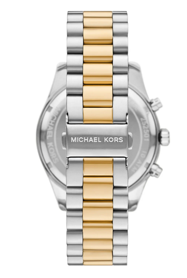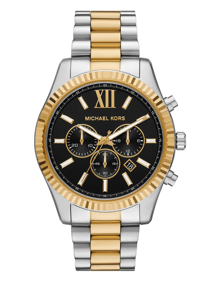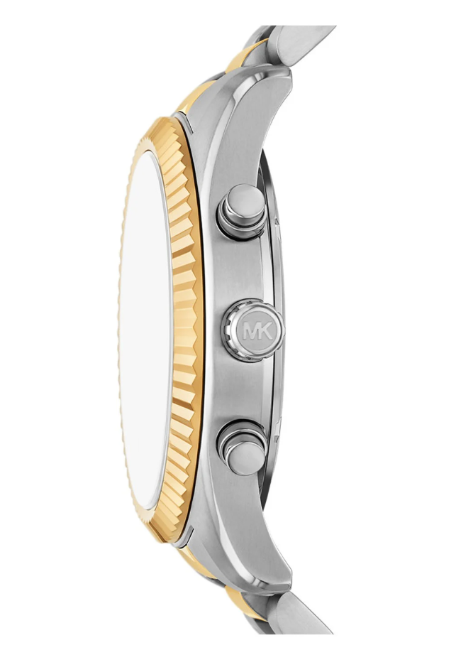 Dit horloge heeft een zwarte analoge wijzerplaat met een bicolor kast (45 mm diameter) en is voorzien van mineraal glas. Het horloge is voorzien van een quartz (batterij) uurwerk en is 10 ATM/Bar (100m) waterdicht. Dit horloge komt uit de Lexington serie. Het horloge heeft de volgende extra functies: Chronograaf en datum. Voor meer informatie over Michael Kors gaat u naar www.michaelkors.com.