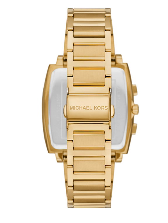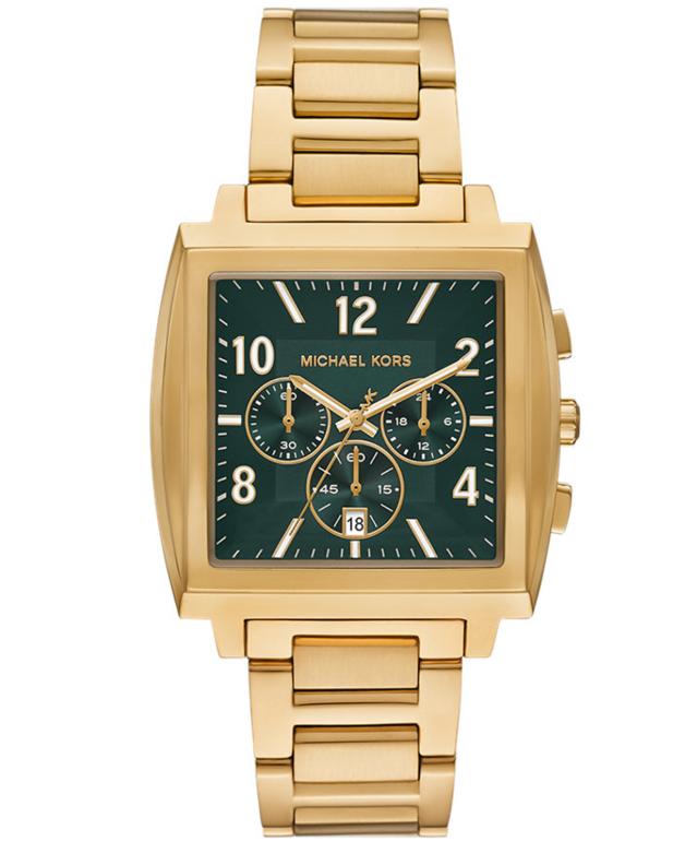 Dit horloge heeft een groene analoge wijzerplaat met een geelgoudkleurige kast (41 mm diameter) en is voorzien van mineraal glas. Het horloge is voorzien van een quartz (batterij) uurwerk en is 5 ATM/Bar (50m) waterdicht. Dit horloge komt uit de Rhys serie. Het horloge heeft de volgende extra functies: datum, chronograaf. Voor meer informatie over Michael Kors gaat u naar www.michaelkors.com.