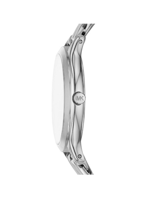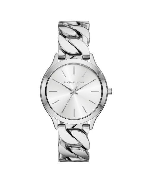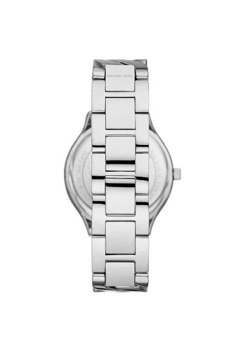 Dit horloge heeft een zilverkleurige analoge wijzerplaat met een zilverkleurige kast (38 mm diameter) en is voorzien van mineraal glas. Het horloge is voorzien van een quartz (batterij) uurwerk en is 5 ATM/Bar (50m) waterdicht. Dit horloge komt uit de Runway serie. Het horloge heeft de volgende extra functies: geen. Voor meer informatie over Michael Kors gaat u naar www.michaelkors.com.