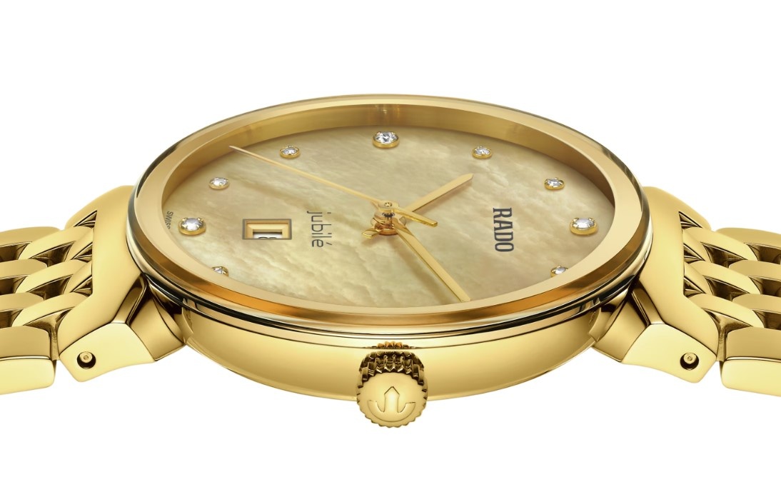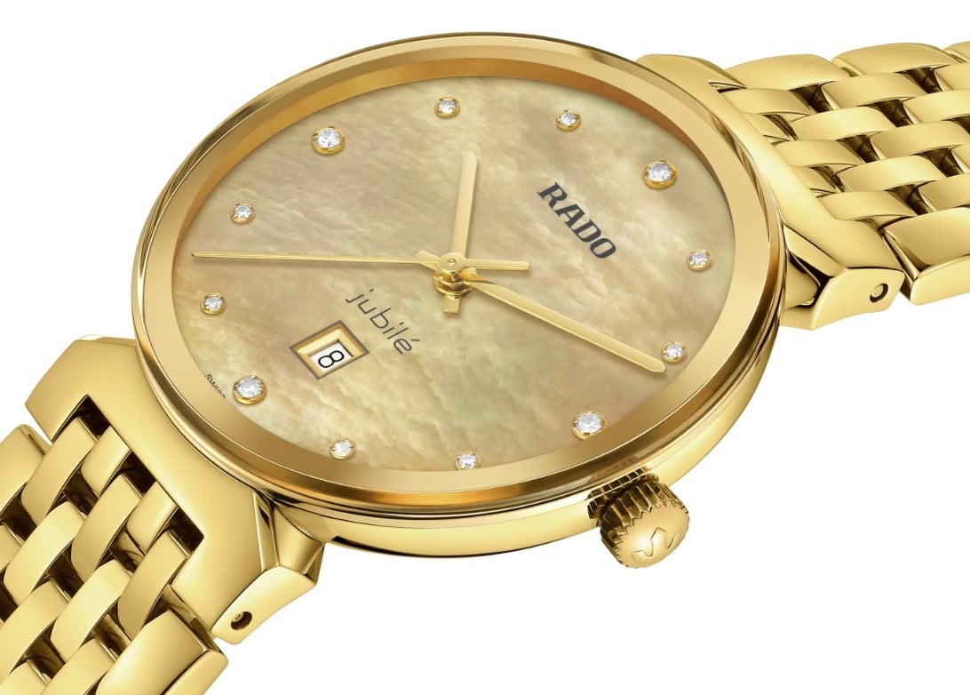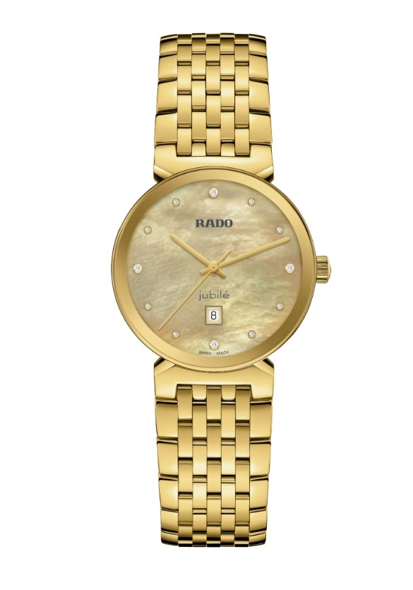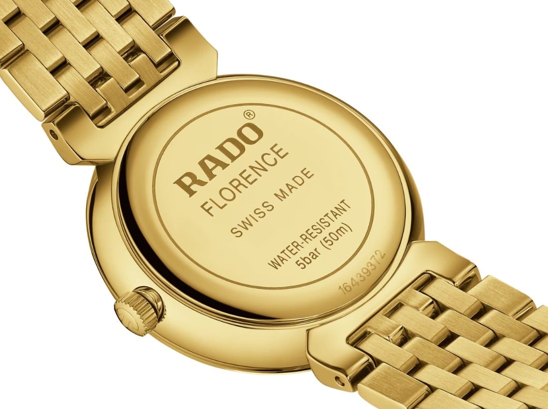 Dit horloge heeft een parelmoer analoge wijzerplaat met een geelgoudkleurige kast (30 mm diameter) en is voorzien van saffierglas. Het horloge is voorzien van een quartz (batterij) uurwerk en is 5 ATM/Bar (50m) waterdicht. Dit horloge komt uit de Florence diamonds serie. Het horloge heeft de volgende extra functies: datum. Voor meer informatie over Rado gaat u naar www.rado.com.