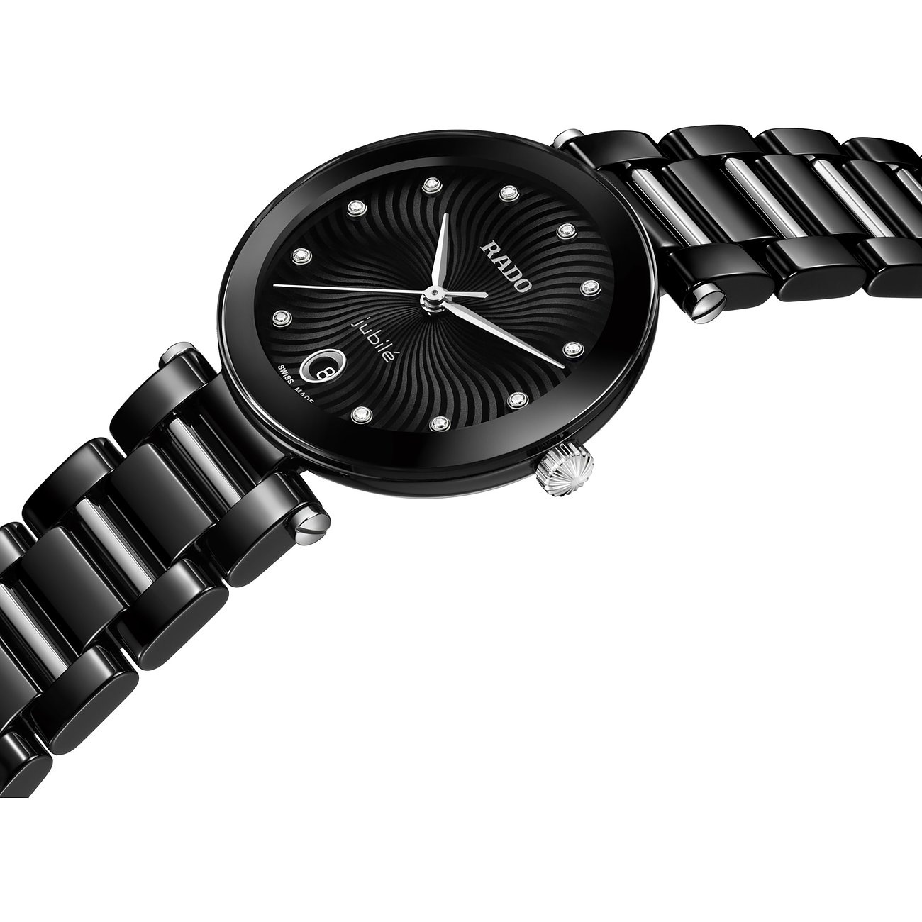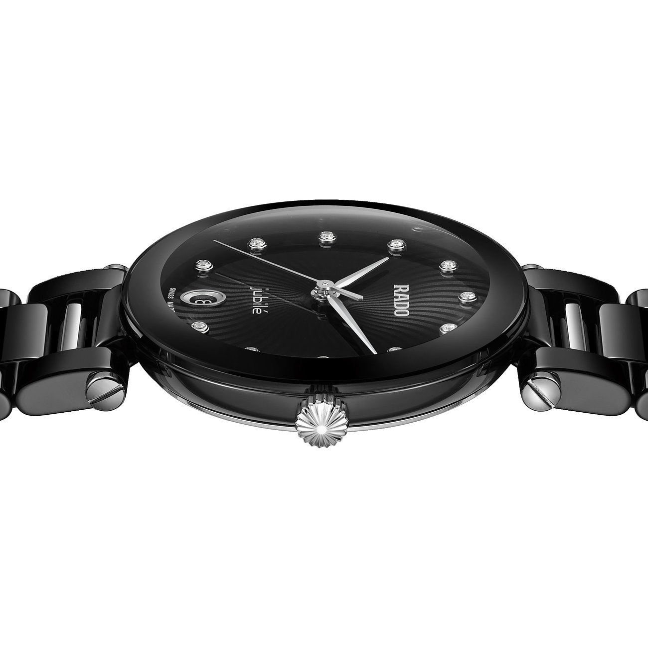 Dit horloge heeft een zwarte analoge wijzerplaat met een zwarte kast (31 mm diameter) en is voorzien van saffier glas. Het horloge is voorzien van een quartz (batterij) uurwerk en is 5 ATM/Bar (50m) waterdicht. Dit horloge komt uit de LaCoupole serie. Het horloge heeft de volgende extra functies: Datum. Voor meer informatie over Rado gaat u naar www.rado.com.