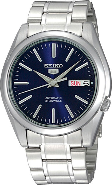 Dit horloge heeft een blauwe analoge wijzerplaat met een zilverkleurige kast (38 mm breed diameter) en is voorzien van mineraal glas. Het horloge is voorzien van een automatisch uurwerk en is 3 ATM/Bar (30m) waterdicht. Dit horloge komt uit de Seiko5 serie. Het horloge heeft de volgende extra functies: datum en dagaanduiding. Voor meer informatie over Seiko gaat u naar www.seiko.nl.