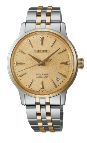Dit horloge heeft een champagnekleurige analoge wijzerplaat met een bicolor kast (34 mm diameter) en is voorzien van hardlex mineraalglas. Het horloge is voorzien van een automatisch uurwerk en is 5 ATM/Bar (50m) waterdicht. Dit horloge komt uit de Presage serie. Het horloge heeft de volgende extra functies: datum. Voor meer informatie over Seiko gaat u naar www.seiko.nl.