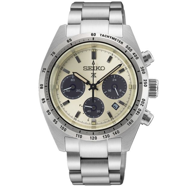 Dit horloge is Limited Edition. Dit horloge heeft een beigeanaloge wijzerplaat met een zilverkleurige kast (42 mm diameter) en is voorzien van saffier glas. Het horloge is voorzien van een solar uurwerk en is 10 ATM/Bar (100m) waterdicht. Het horloge heeft de volgende extra functies: datum, chronograaf, tachymeter, 24-uursaanduiding. Dit horloge wordt geleverd met een extra band. Voor meer informatie over Seiko gaat u naar www.seiko.nl.