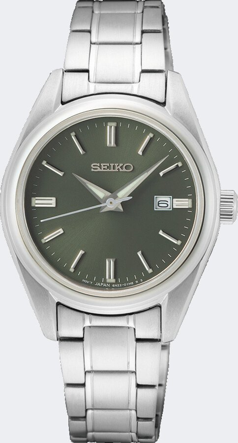 Dit horloge heeft een groene analoge wijzerplaat met een zilverkleurige kast (29.8 mm diameter) en is voorzien van saffierglas. Het horloge heeft een quartz uurwerk en is 10 ATM/Bar (100m) waterdicht. Het horloge heeft de volgende extra functies: datum. Voor meer informatie over Seiko gaat u naar www.seiko.nl.