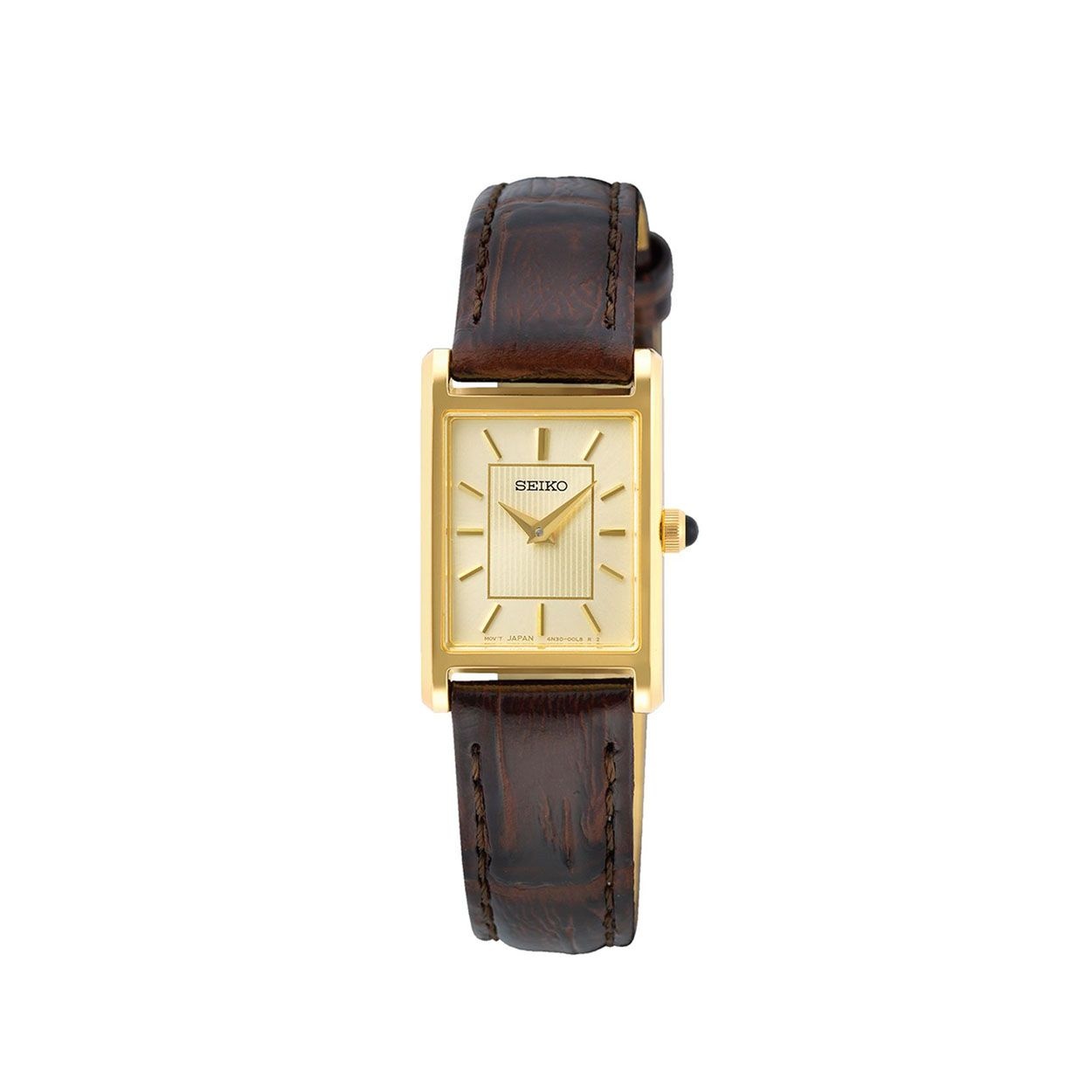 Dit horloge heeft een geelgoudkleurige analoge wijzerplaat met een geelgoudkleurige kast (19,60 mm diameter) en is voorzien van saffierglas. Het horloge is voorzien van een quartz (batterij) uurwerk en is 50 ATM/Bar (50m) waterdicht. Het horloge heeft geen extra functies. Voor meer informatie over Seiko gaat u naar www.seiko.nl.