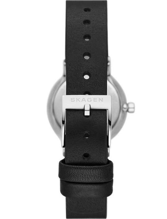 Dit horloge heeft een zilverkleurige analoge wijzerplaat met een zilverkleurige kast (26 mm diameter) en is voorzien van mineraal glas. Het horloge is voorzien van een quartz (batterij) uurwerk en is 3 ATM/Bar (30m) waterdicht. Dit horloge komt uit de Freja serie. Het horloge heeft geen extra functies. Voor meer informatie over Skagen gaat u naar www.skagen.com.