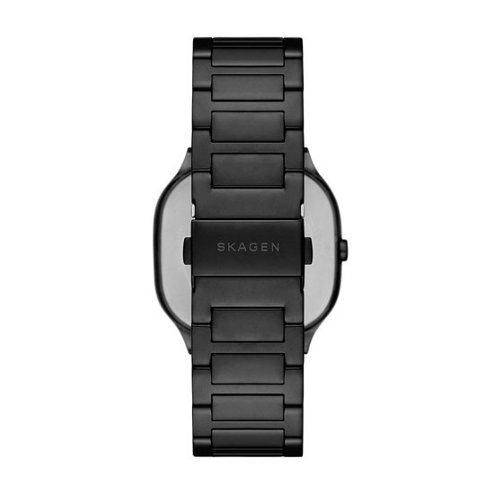 Dit horloge heeft een zwarte analoog wijzerplaat met een zwarte kast (40 mm diameter) en is voorzien van mineraal glas. Het horloge is voorzien van een quartz (batterij) uurwerk en is 3 ATM/Bar (30m) waterdicht. Dit horloge komt uit de Mellem serie. Het horloge heeft geen extra functies. Voor meer informatie over Skagen gaat u naar www.skagen.com.