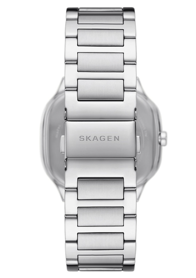 Dit horloge heeft een zilverkleurige analoog wijzerplaat met een zilverkleurige kast (40 mm diameter) en is voorzien van mineraal glas. Het horloge is voorzien van een quartz (batterij) uurwerk en is 3 ATM/Bar (30m) waterdicht. Dit horloge komt uit de Mellem serie. Het horloge heeft geen extra functies. Voor meer informatie over Skagen gaat u naar www.skagen.com.