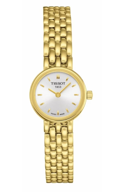Dit horloge heeft een zilverkleurige analoge wijzerplaat met een geelgoudkleurige kast (19,5 mm diameter) en is voorzien van saffier glas. Het horloge is voorzien van een quartz uurwerk en is 3 ATM/Bar (30m) waterdicht. Dit horloge komt uit de Lovely serie. Het horloge heeft geen extra functies. Voor meer informatie over Tissot gaat u naar www.tissot.ch.