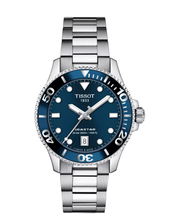 Dit horloge heeft een blauwe analoge wijzerplaat met een zilverkleurige kast (36 mm diameter) en is voorzien van saffier glas. Het horloge is voorzien van een quartz uurwerk en is 30 ATM/Bar (300m) waterdicht. Dit horloge komt uit de Seastar serie. Het horloge heeft de volgende extra functies: datum. Voor meer informatie over Tissot gaat u naar www.tissot.ch.