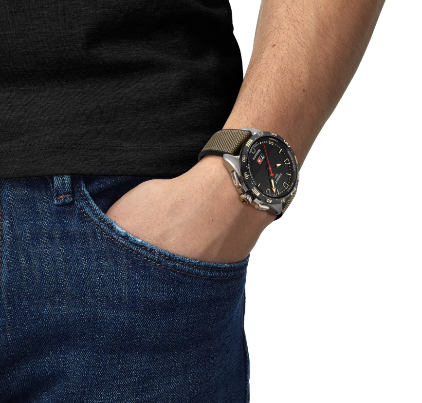 Dit horloge heeft een zwarte analoge wijzerplaat met een titanium kast (47,5 mm diameter) en is voorzien van saffier glas. Het horloge is voorzien van een quartz uurwerk en is 10 ATM/Bar (100m) waterdicht. Dit horloge komt uit de Sport Connect serie. Het horloge heeft de volgende extra functies: tijd, tijdzones, automatische zomertijd, eeuwigdurende kalender, alarm, timer, chrono split, chrono ronde, chrono logboek, stappenteller, verbrande calorieën, afgelegde afstand, hoogtemeter, barometer, temperatuur, weertrend, kompas, azimut, notificaties, LIB_INCOMING-CALLS, verbindingswaarschuwingen, veligheidsslot, eco modus, automatische slaapmodus. Voor meer informatie over Tissot gaat u naar www.tissot.ch.