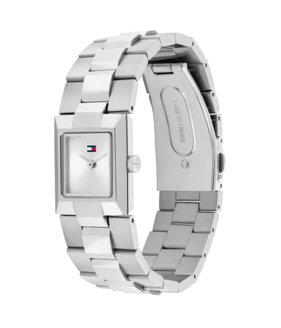 Dit horloge heeft een zilverkleurige analoge wijzerplaat met een zilverkleurige kast (25 mm diameter) en is voorzien van mineraal glas. Het horloge is voorzien van een quartz (batterij) uurwerk en is 3 ATM/Bar (30m) waterdicht. Dit horloge komt uit de Ivy serie. Het horloge heeft geen extra functies. Voor meer informatie over Tommy Hilfiger gaat u naar www.tommy.com.