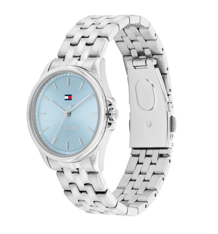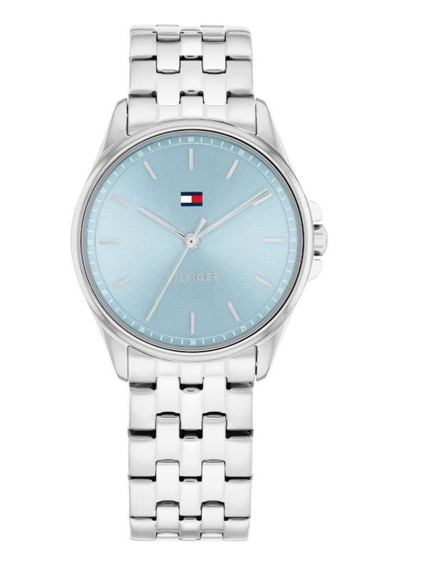 Dit horloge heeft een blauwe analoge wijzerplaat met een zilverkleurige kast (30 mm diameter) en is voorzien van mineraalglas. Het horloge is voorzien van een quartz (batterij) uurwerk en is 3 ATM/Bar (30m) waterdicht. Dit horloge komt uit de Jade serie. Het horloge heeft geen extra functies. Voor meer informatie over Tommy Hilfiger gaat u naar www.tommy.com.