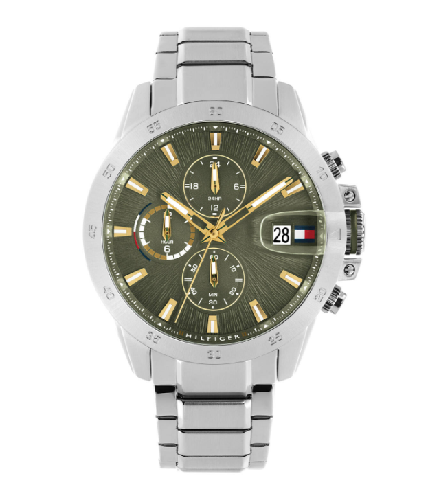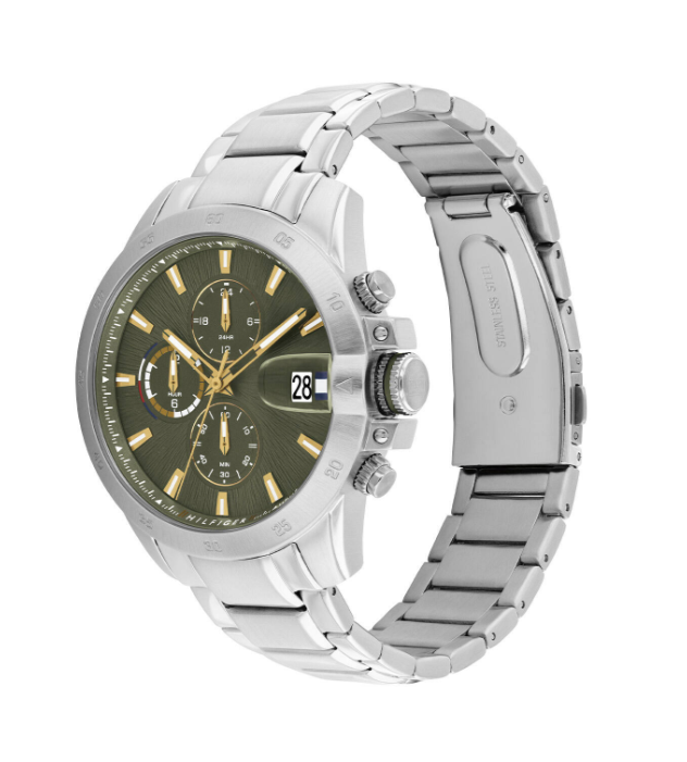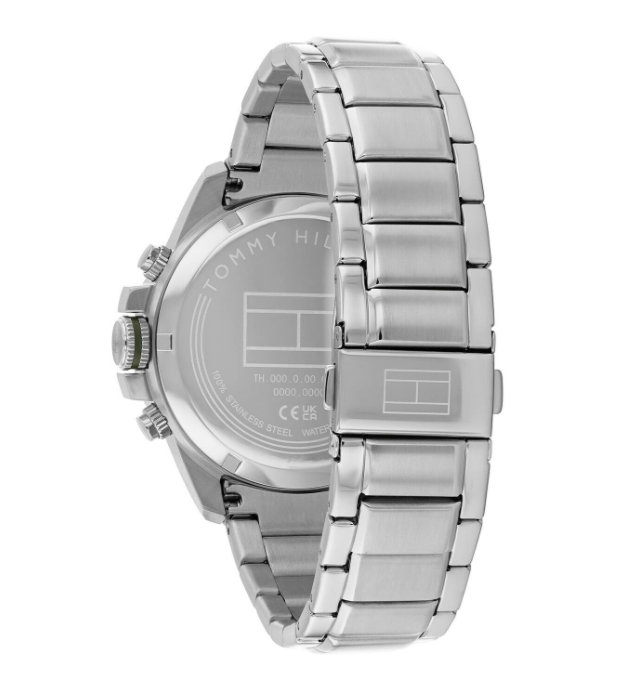 Dit horloge heeft een groene analoge wijzerplaat met een zilverkleurige kast (43 mm diameter) en is voorzien van mineraal glas. Het horloge is voorzien van een quartz (batterij) uurwerk en is 5 ATM/Bar (50m) waterdicht. Dit horloge komt uit de Jameson serie. Het horloge heeft de volgende extra functies: chronograaf, datum- en 24-uursaanduiding. Voor meer informatie over Tommy Hilfiger gaat u naar www.tommy.com.