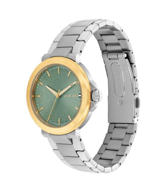 Dit horloge heeft een groene analoge wijzerplaat met een geelgoudkleurige kast (34 mm diameter) en is voorzien van mineraal glas. Het horloge is voorzien van een quartz (batterij) uurwerk en is 5 ATM/Bar (50m) waterdicht. Dit horloge komt uit de Lori serie. Het horloge heeft extra functies. Voor meer informatie over Tommy Hilfiger gaat u naar www.tommy.com.