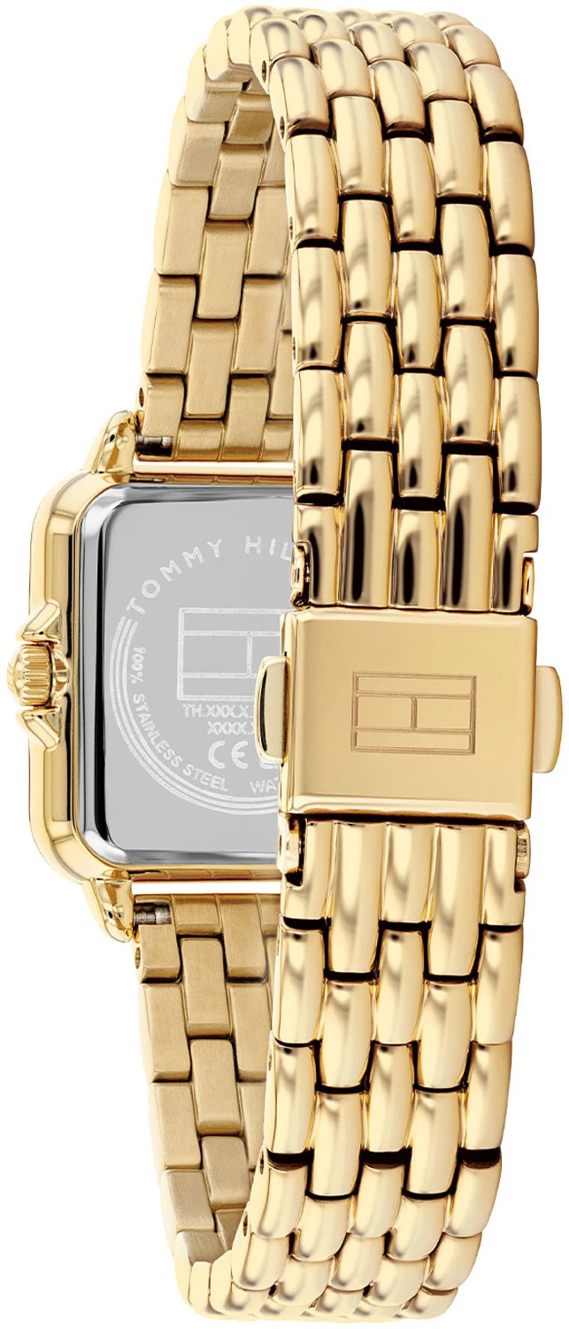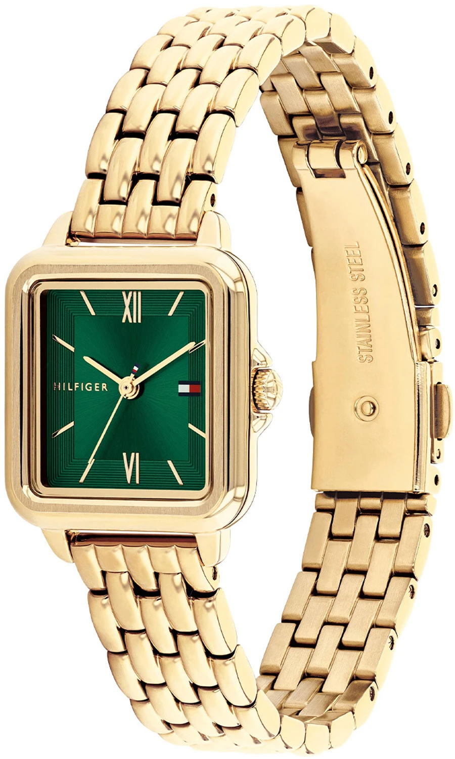 Dit horloge heeft een groene analoge wijzerplaat met een geelgoudkleurige kast (24 mm diameter) en is voorzien van mineraal glas. Het horloge is voorzien van een quartz (batterij) uurwerk en is 3 ATM/Bar (30m) waterdicht. Dit horloge komt uit de Tea serie. Het horloge heeft geen extra functies. Voor meer informatie over Tommy Hilfiger gaat u naar www.tommy.com.