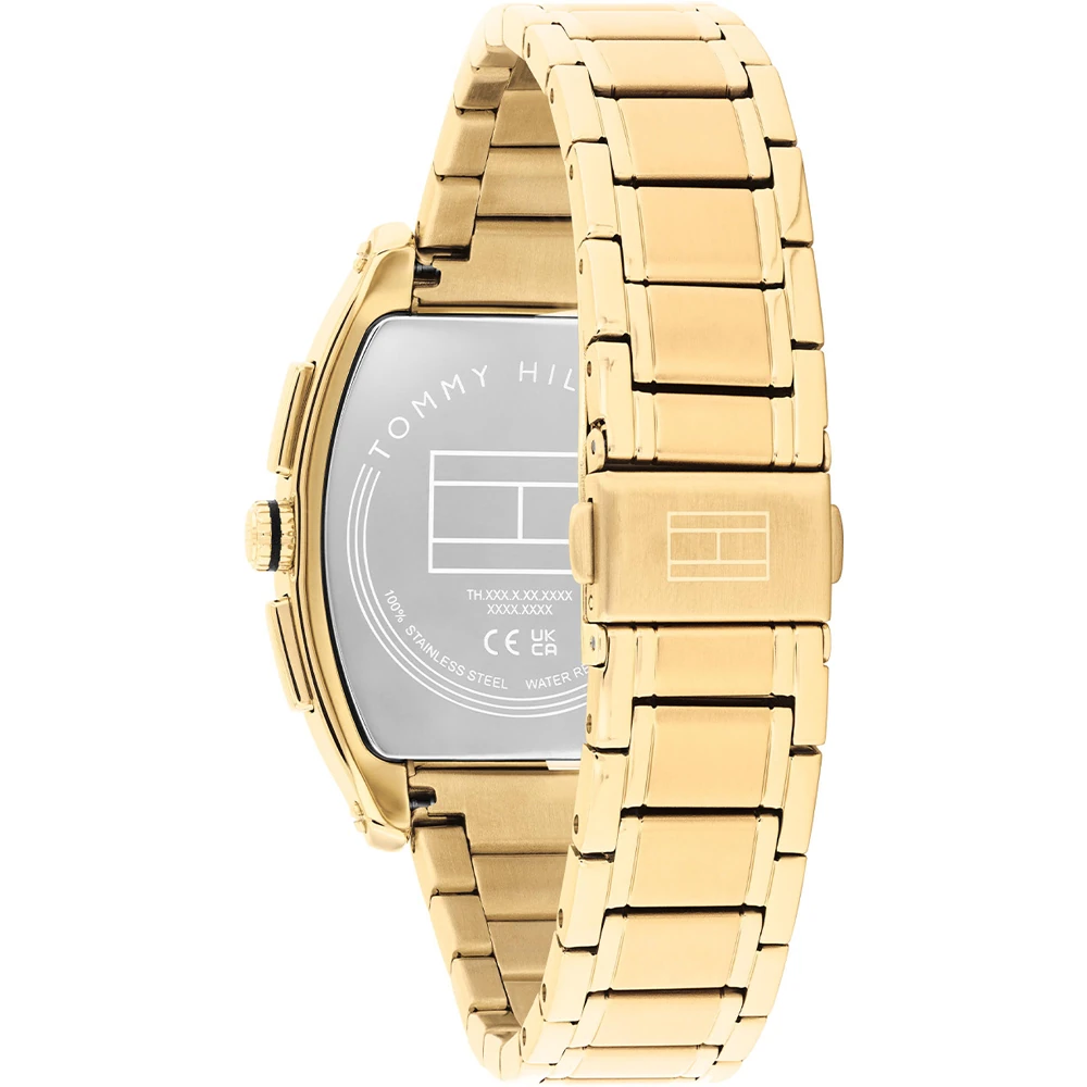 Dit horloge heeft een zwarte analoge wijzerplaat met een geelgoudkleurige kast (36 mm diameter) en is voorzien van mineraal glas. Het horloge is voorzien van een quartz (batterij) uurwerk en is 3 ATM/Bar (30m) waterdicht. Dit horloge komt uit de Oxford serie. Het horloge heeft de volgende extra functies: dag- en datumaanduiding, 24-uursaanduiding. Voor meer informatie over Tommy Hilfiger gaat u naar www.tommy.com.
