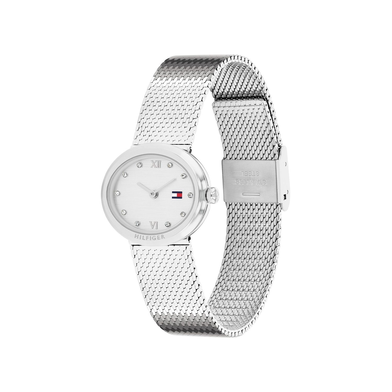 Dit horloge heeft een zilverkleurige analoge wijzerplaat met een zilverkleurige kast (25 mm diameter) en is voorzien van mineraal glas. Het horloge is voorzien van een quartz (batterij) uurwerk en is 3 ATM/Bar (30m) waterdicht. Het horloge heeft geen volgende extra functies. Voor meer informatie over Tommy Hilfiger gaat u naar www.tommy.com.