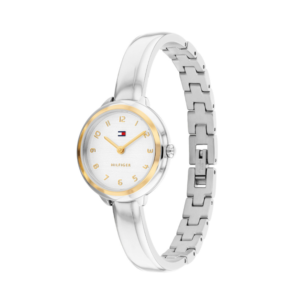 Dit horloge heeft een zilverkleurige analoge wijzerplaat met een zilverkleurige kast (26 mm diameter) en is voorzien van mineraalglas. Het horloge is voorzien van een quartz (batterij) uurwerk en is 3 ATM/Bar (30m) waterdicht. Het horloge heeft geen extra functies. Voor meer informatie over Tommy Hilfiger gaat u naar www.tommy.com.