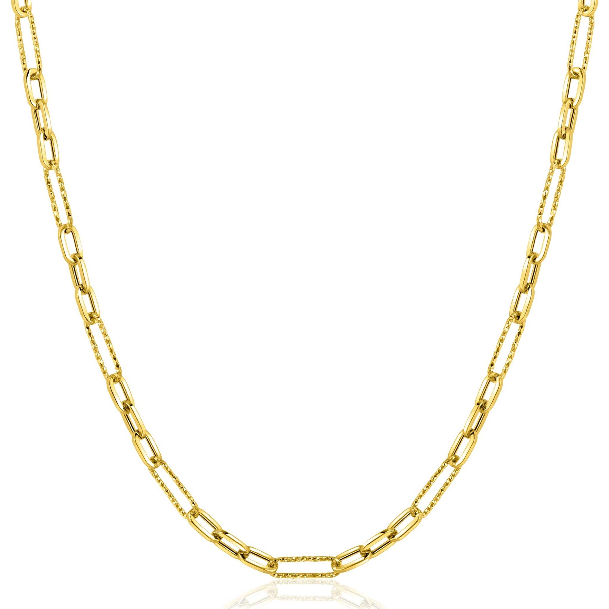 Dit collier is gemaakt van 14 karaats goud en is geelgoudkleurig. Het collier is 41 tot 43 cm lang en 3.5cm breed. Als officieel dealer van Zinzi kunnen wij alles voor u bestellen. Voor meer informatie over dit merk gaat u naar www.zinzi.nl