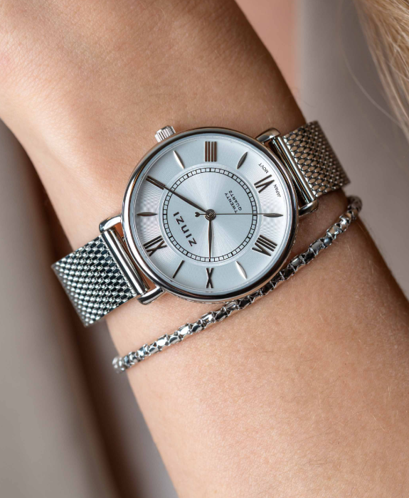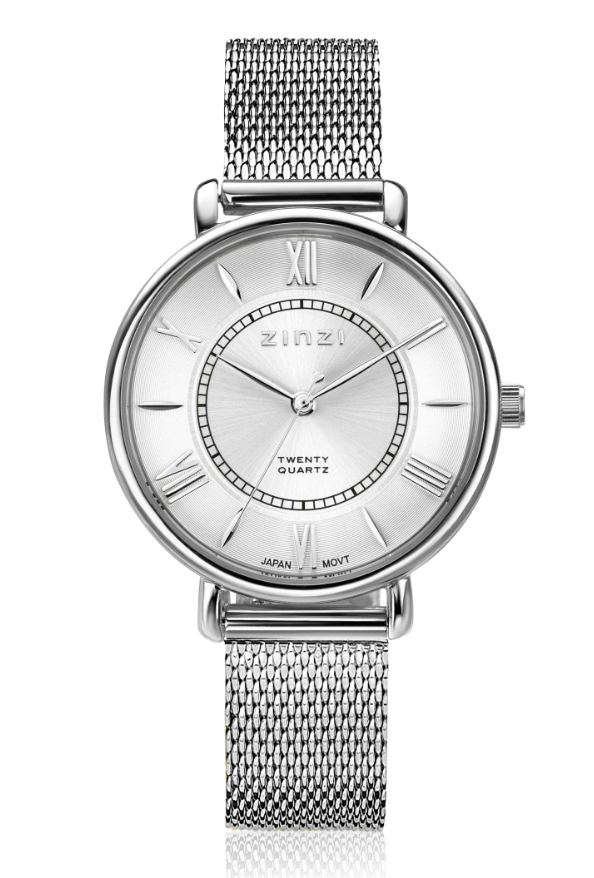 Dit horloge heeft een zilverkleurige analoge wijzerplaat met een zilverkleurige kast (34 mm diameter) en is voorzien van mineraal glas. Het horloge is voorzien van een quartz (batterij) uurwerk en is 5 ATM/Bar (50m) waterdicht. Het horloge heeft geen extra functies. Voor meer informatie over Zinzi gaat u naar www.zinzi.nl